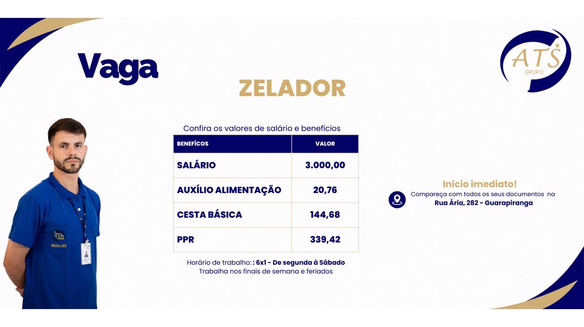 3. Desejável curso de zeladoria, piscina e NR 10 e 35.